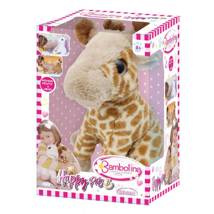 Λούτρινη διαδραστική καμηλοπάρδαλη με λαμπερά μάτια. Κουνάει το κεφάλι της και το στόμα της. Πίεσε το πόδι της και θα τραγουδήσει μελωδικά.