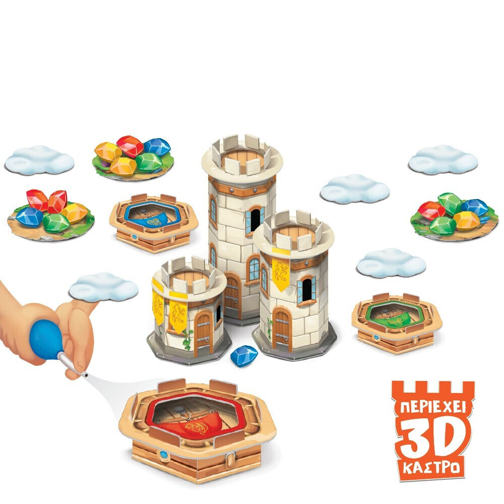 Καλωσήρθες στον κόσμο των Ιπτάμενων Μονομάχων! Ταξίδεψε από νησί σε νησί, μάζεψε πολύτιμους κρυστάλλους και τοποθέτησε τις σημαίες σου στους πύργους. Χρησιμοποίησε τον φυσητήρα για να μετακινήσεις το πλοίο σου και να ξεπεράσεις τους αντιπάλους σου. Ιδανικό για όλες τις ηλικίες, οι Ιπτάμενοι Μονομάχοι συνδυάζουν στρατηγική και επιδεξιότητα με έναν πρωτότυπο τρόπο παιχνιδιού.