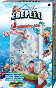 Η απόλυτη περιπέτεια κατάκτησης της κορυφής!Άρχισε να σκαρφαλώνεις προς την κορυφή του βουνού αλλά πρόσεξε που θα βάλεις το τσεκούρι σου. Ο αντίπαλός σου βρίσκεται στην άλλη πλευρά και ίσως προλάβει να σε ρίξει κάτω. Γίνε εσύ ο πρώτος που θα καταφέρεις να φτάσεις δύο ορειβάτες του ίδιου χρώματος στην κορφή του Έβερεστ και κέρδισε!Ένα πρωτότυπο παιχνίδι δράσης & στρατηγικής.Περιέχει: 1 βουνό/πάνελ, 4 ορειβάτες, 1 τροχό, οδηγίες.