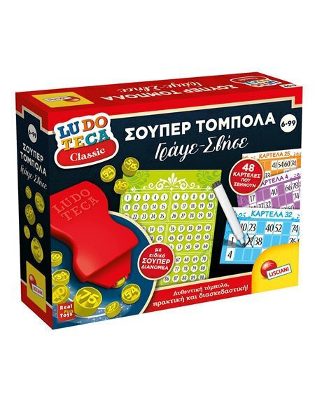 Το πιο κλασικό παιχνίδι διακοπών σε μια πρωτότυπη έκδοση "σημαδέψτε και σβήστε"! Αυτή η Τόμπολα περιέχει 8 ειδικούς μαρκαδόρους για να σημειώσετε τους αριθμούς που τραβήχτηκαν στις κάρτες. Μόλις τελειώσει το παιχνίδι, μπορείτε να τα σβήσετε όλα και να ξεκινήσετε ένα καινούριο για να προσπαθήσετε να κερδίσετε ξανά.