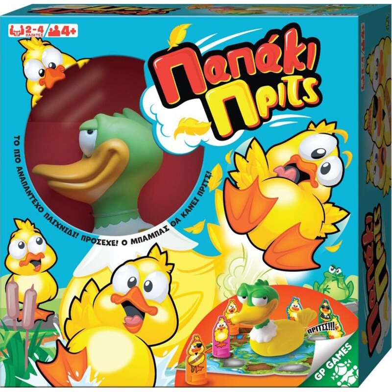 Γίνε ο πρώτος που θα καταφέρει να φτάσουν τα παπάκια του στο ποταμάκι πριν ο Μπαμπάς Παπάκης κάνει...πριτς και τα βγάλει από το μονοπάτι τους! Το επιτραπέζιο ""Παπάκι Πρίτς"" είναι ένα ξεκαρδιστικό επιτραπέζιο παιχνίδι για όλη την οικογένεια κατάλληλο για παιδιά από 4 ετών. Η συσκευασία περιέχει: 1 ταμπλό, 1 Μπαμπά Παπάκη, 1 βάση στήριξης, 12 παπάκια με χρωματιστές βάσεις.