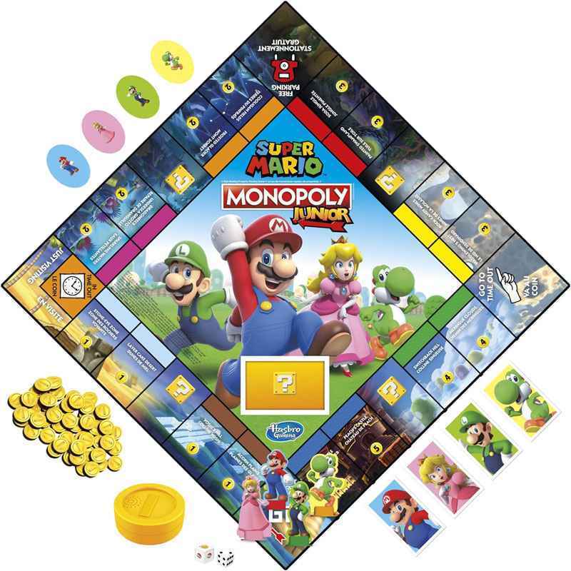 Το παιχνίδι Monopoly Junior γίνεται ένα με τους χαρακτήρες Super Mario για περιπέτιες γεμάτες δράση! Σε αυτό το επιτραπέζιο παιχνίδι Monopoly Junior: Super Mario Edition τα παιδιά μπορούν να φανταστούν μια διασκεδαστική περιπέτεια στο Mushroom Kingdom. Μπορούν να επιλέξουν να παίξουν ως Mario, Peach, Yoshi ή Luigi και να μετακινηθούν στον πίνακα παιχνιδιού αγοράζοντας ακίνητα και συλλέγοντας νομίσματα. Οι παίκτες ρίχνουν το ζάρι ενεργοποίησης για να δουν αν μπορούν να πατήσουν τη μονάδα ήχου νομισμάτων για να ακούσουν τον εμβληματικό ήχο νομισμάτων από το Super Mario και να συλλέξουν κέρματα. Αυτό το διασκεδαστικό παιχνίδι για παιδιά κάνει ένα υπέροχο δώρο γενεθλίων ή διακοπών για τους θαυμαστές του Super Mario και τα παιδιά ηλικίας 5+. Εμπορικό σήμα και πνευματικά δικαιώματα 2021 Nintendo. Τα ονόματα και τα λογότυπα Hasbro, Hasbro Gaming, Parker Brothers είναι εμπορικά σήματα της Hasbro.