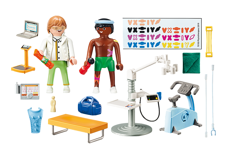 Ο φυσικοθεραπευτής χρησιμοποιεί το Τεστ Κόπωσης για να μετρήσει την αντοχή του ασθενή στο στατικό ποδήλατο. Με αυτοκόλλητες ταινίες κινησιοεπίδεσης.