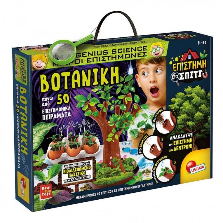 Επιστημονικό σετ για να κάνετε πολλά βοτανικά πειράματα στο σπίτι με τύρφη και σπόρους. Επιπλέον, με αυτό το πρωτότυπο σετ μπορείτε να δημιουργήσετε ένα πραγματικό δέντρο, χάρη στο μοντέλο από βιοδιασπώμενο πλαστικό: απλά γεμίστε το με τύρφη, σπείρετε και καλλιεργήστε το. Σε λίγο το δέντρο θα ζωντανέψει και από τις τρύπες του κορμού θα φυτρώσουν πολλά πλούσια φύλλα! Περιεχόμενα Τύρφη Σπόροι Βιοδιασπώμενες γλάστρες Φτυάρι Πιπέτα Βιοπλαστική βάση δέντρου Πιατάκι Κάρτες πειραμάτων Εικονογραφημένο βιβλίο οδηγιών