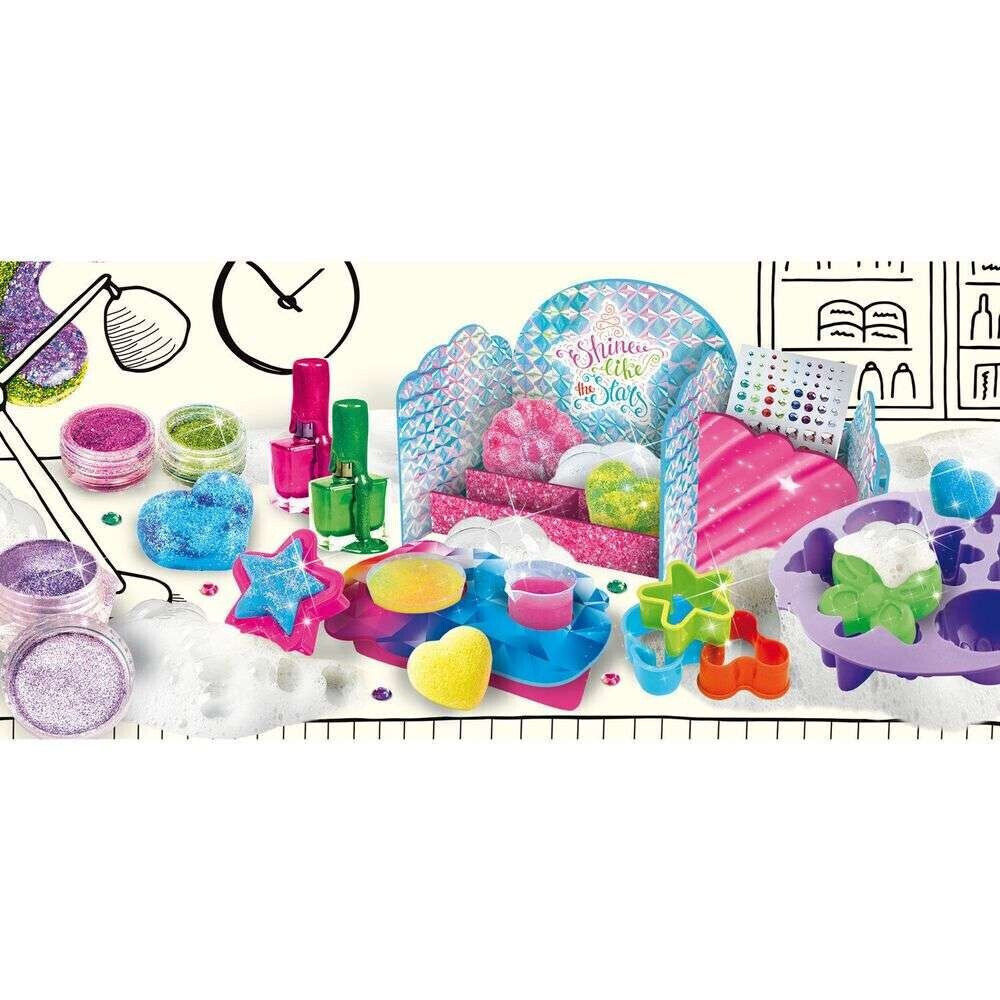 Ένα επιστημονικό σετ για να δημιουργήσετε με ασφάλεια πολλές λαμπερές και αστραφτερές δημιουργίες! Μάλιστα, θα μπορείτε να δημιουργήσετε ολογραφικά βερνίκια νυχιών με γκλίτερ και νέον και πολλών ειδών χρωματιστά, αρωματικά και αφρώδη σαπούνια με κλασικά συστατικά, αλλά και την πρωτοποριακή μαλακή σαπουνόπαστα, που θα σας επιτρέψει να φτιάξετε μπάρες σαπουνιού πιο εύκολα, γρήγορα και πάνω από όλα στα σχήματα που προτιμάτε!
