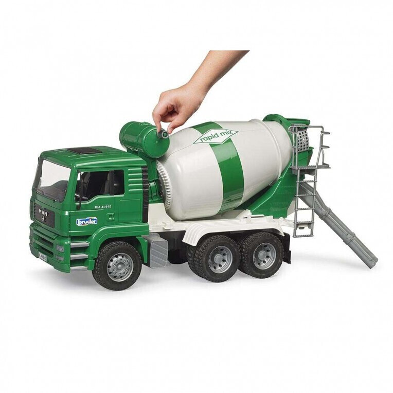Ο νέος μας μίκτης τσιμέντου βασίζεται στο γνωστό και δοκιμασμένο MAN TGA. Η καμπίνα του μπορεί να έχει κλίση και προσφέρει θέα στο μπλοκ κινητήρα. Περιστρέψτε το εκσυγχρονισμένο τύμπανο του μίκτη τσιμέντου χρησιμοποιώντας μια χειροκίνητη μανιβέλα εγκατεστημένη στη δεξαμενή νερού. Το τύμπανο διαθέτει έναν σπειροειδή μεταφορέα και μίξερ και, όπως και το πρωτότυπο, το τύμπανο αδειάζει αντιστρέφοντας την φορά περιστροφής του. Η σπείρα στο εσωτερικό του τυμπάνου μεταφέρει το φορτίο στον αγωγό εκκένωσης στο πίσω μέρος. Περιλαμβάνει δύο βυσματωμένους αγωγούς αποστράγγισης. Μια φιγούρα του bworld μπορεί να ελέγξει τις λειτουργίες του μίκτη ανεβαίνοντας τις προσαρτημένες σκάλες. Από τη μεγάλη γκάμα κατασκευαστικών οχημάτων BRUDER, αυτός ο φανταστικός αναδευτήρας φορτηγών μπορεί να συνδυαστεί με το φορτηγό ανατρεπόμενο φορτηγό BRUDER και τον εκσκαφέα Liebherr (αρ. είδους 02751) και πολλά άλλα οχήματα για να δημιουργήσετε εκτεταμένους κόσμους παιχνιδιού.