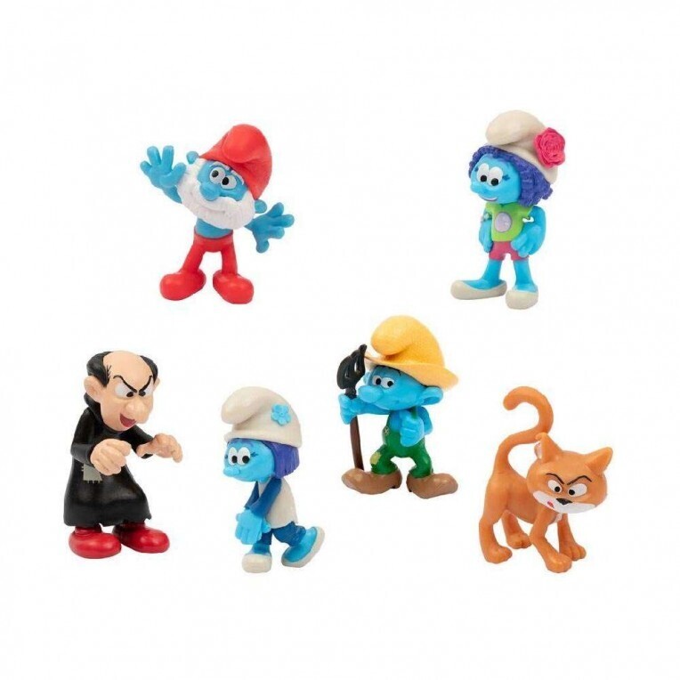 Το σετ περιλαμβάνει τους αγαπημένους Φουσκαλίτσα, Λουσίλα, Παπαστρούμφ, Στρουμφ Αγρότη, Δρακουμέλ και τη Ψιψινέλ, τους πιο γνωστούς ήρωες από τις περιπέτειες των Στρουμφ.