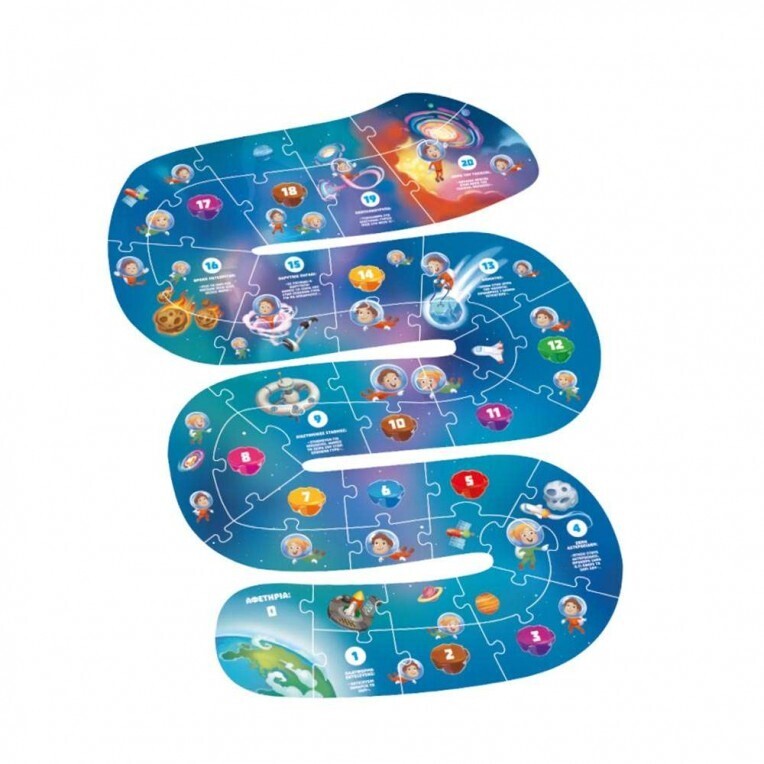 Πόσους πλανήτες βλέπεις στην εικόνα; Μπορείς να τους ταιριάξεις με τον σωστό αριθμό; Ένωσε τα κομμάτια αριθμών με τις κατάλληλες ποσότητες και ετοιμάσου για ένα ταξίδι στο διάστημα! Κλείσε τα μάτια και ψηλάφισε τους αριθμούς. Μπορείς να τους καταλάβεις; Έπειτα, φτιάξε το παζλ από την αντίθετη πλευρά και παίξε ένα διαστημικό «φιδάκι»!