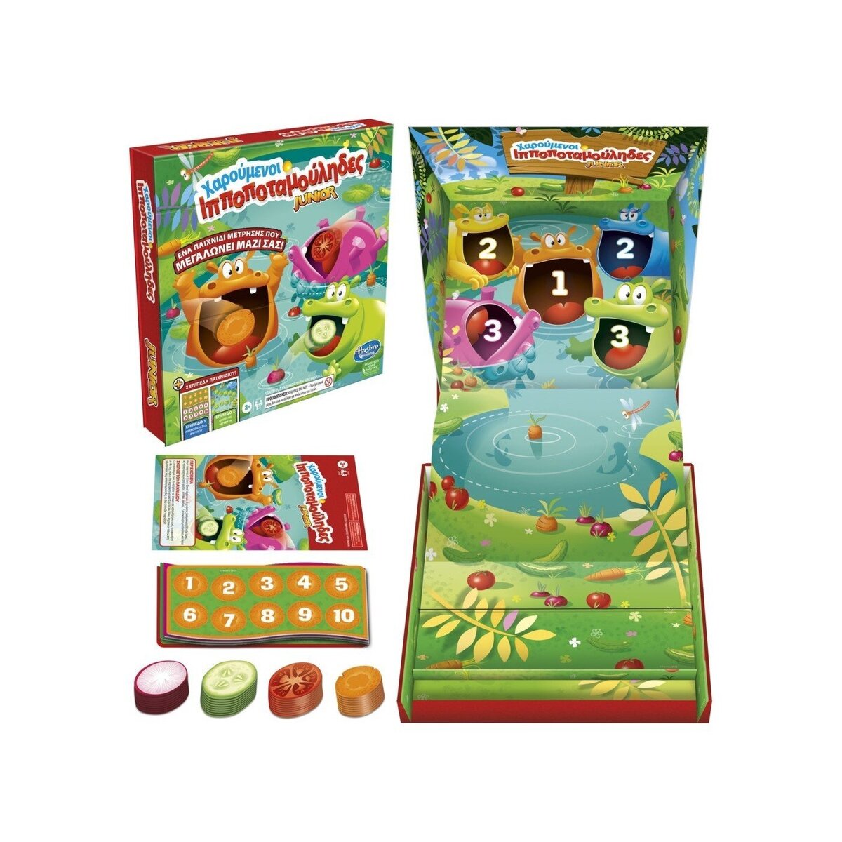 Το επιτραπέζιο παιχνίδι Hungry Hungry Hippos Junior επιτρέπει στα παιδιά να εξασκούνται στην αναγνώριση και την καταμέτρηση αριθμών. Εμπνευσμένοι από το παιχνίδι του Skee Ball, οι παίκτες σύρουν τα ξύλινα πικ λαχανικών μέχρι τους πεινασμένους ιπποπόταμους που περιμένουν στο Lunch Lagoon.