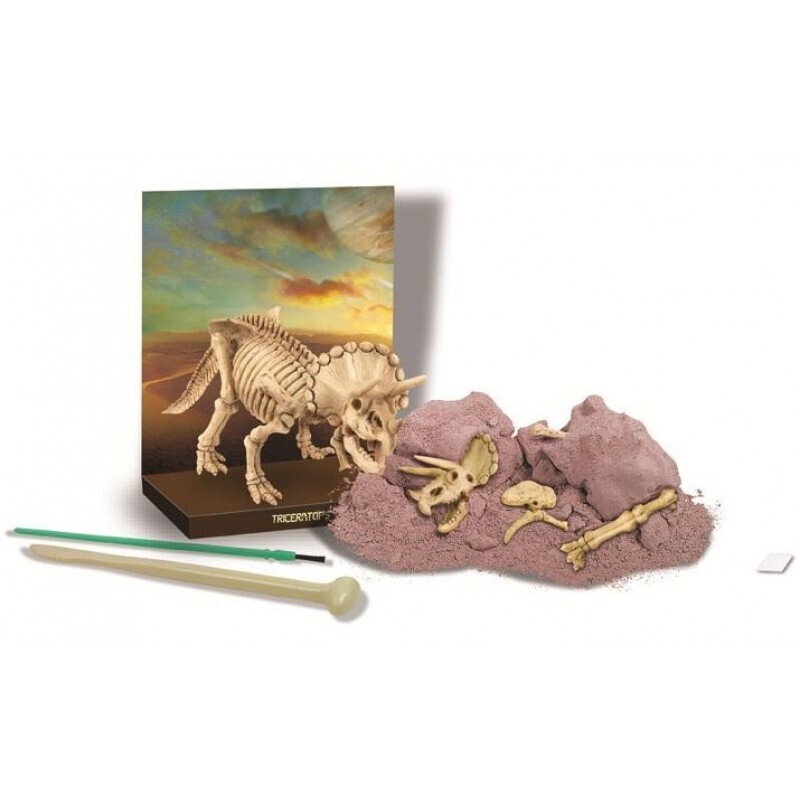 Σκάψτε με τα ειδικά εργαλεία ανασκαφής που θα βρείτε στη συσκευασία και ανακαλύψτε, σαν αληθινοί παλαιοντολόγοι, τους σκελετούς των γιγάντιων ζώων που έζησαν και κυβέρνησαν πριν εκατομμύρια χρόνια τη γη.