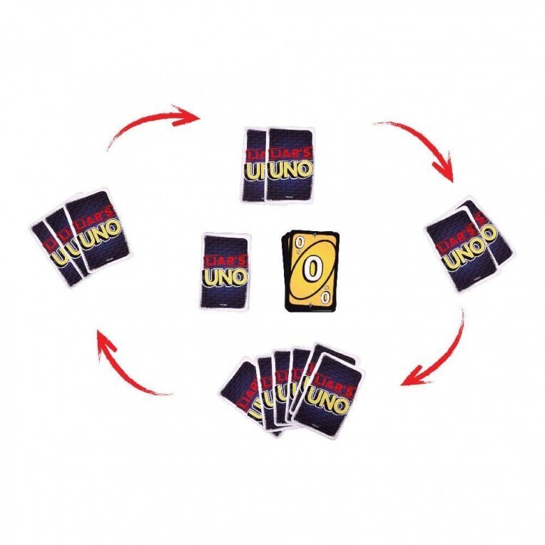 Οι φίλοι του UNO θα απολαύσουν αυτήν τη συναρπαστική παραλλαγή του κλασικού παιχνιδιού καρτών, όπου οι μπλόφες κυριαρχούν και οι πιο πονηροί παίκτες έχουν το πλεονέκτημα. Οι παίκτες τοποθετούν μια Liar's Card κλειστή και ανακοινώνουν τι κάρτα είναι, αφήνοντας τους υπόλοιπους να αποφασίσουν αν λένε την αλήθεια ή μπλοφάρουν.