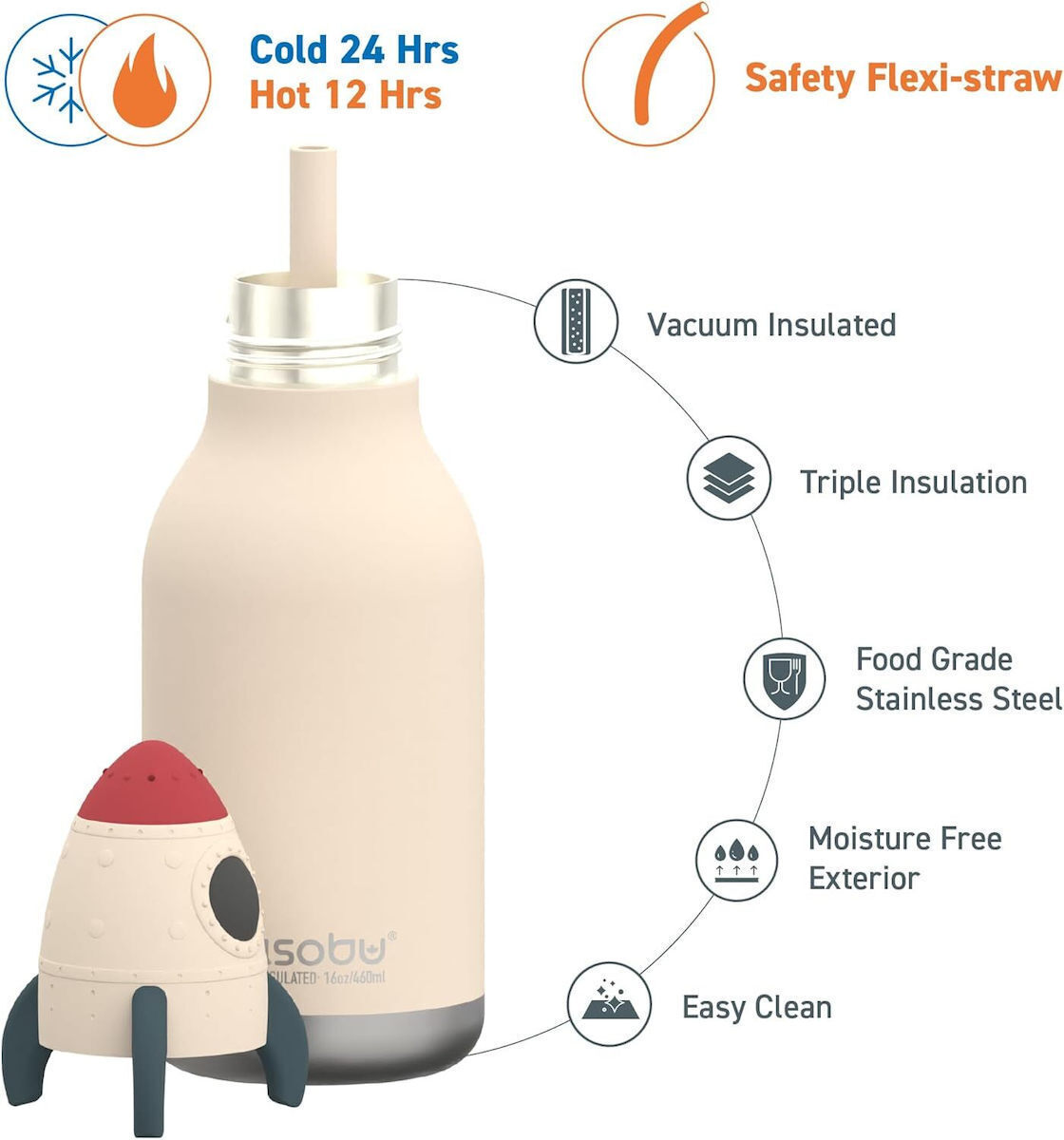 Το καπάκι του περιλαμβάνει καλαμάκι, διευκολύνοντας την κατανάλωση του ροφήματος. Με χωρητικότητα 460 ml, καλύπτει τις καθημερινές ανάγκες ενυδάτωσης των παιδιών.