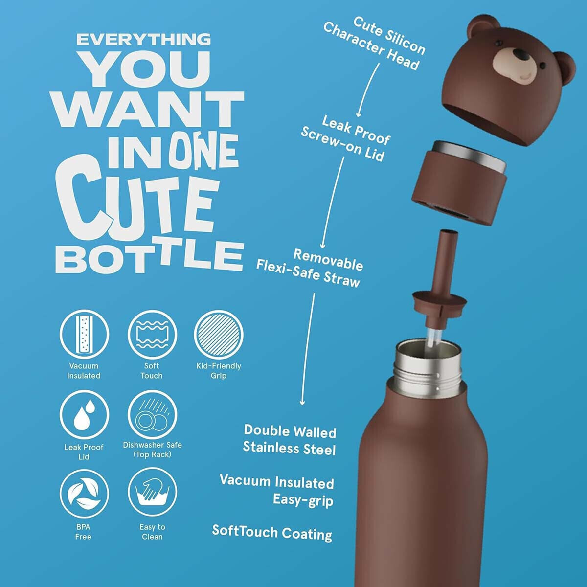 Κατασκευασμένο από ανοξείδωτο χάλυβα, το παγούρι αυτό είναι ανθεκτικό και δεν σκουριάζει με την πάροδο του χρόνου, ιδανικό για τα οξέα που περιέχουν τα φρούτα και τους χυμούς. Επιπλέον, η ιδιότητά του να διατηρεί τις θερμοκρασίες κάνει τη χρήση του άνετη και ασφαλή.