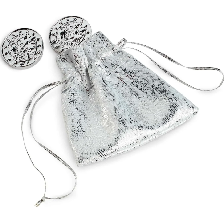 - Συνοδεύεται από μία αστραφτερή τσάντα που ανοίγει για να αποκαλύψει ασημί νεραϊδένια νομίσματα