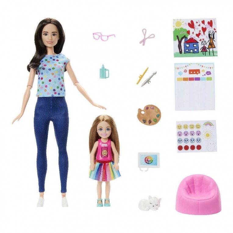 Με το σετ καλλιτεχνικής θεραπείας κούκλας Barbie, τα παιδιά μπορούν να σχεδιάσουν κάθε είδους τρόπους παιχνιδιού! Το θεματικό σετ συνοδεύεται από μια κούκλα θεραπευτή Barbie και μια κούκλα ασθενή που έχει ένα μοναδικό χαρακτηριστικό - τα παιδιά μπορούν να περιστρέψουν το emoji στο πουκάμισο της μικρής κούκλας για να εκφράσουν τα συναισθήματά τους. Συνολικά 10 αξεσουάρ, συμπεριλαμβανομένου ενός αξιολάτρευτου γατάκι, προμήθειες τέχνης και αυτοκόλλητα διάθεσης, εμπλέκουν τη φαντασία στην αφήγηση και το παιχνίδι ρόλων καθώς εξερευνούν καριέρες στον τομέα της ψυχικής υγείας.