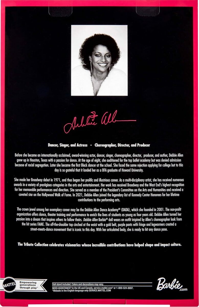 Η Barbie τιμά τη μοναδική Debbie Allen με μια κούκλα που γιορτάζει αυτήν τη βραβευμένη και πολυτάλαντη καλλιτέχνιδα, η οποία έχει αφήσει το στίγμα της ως ηθοποιός, χορεύτρια, χορογράφος, σκηνοθέτις και πολλά ακόμη.