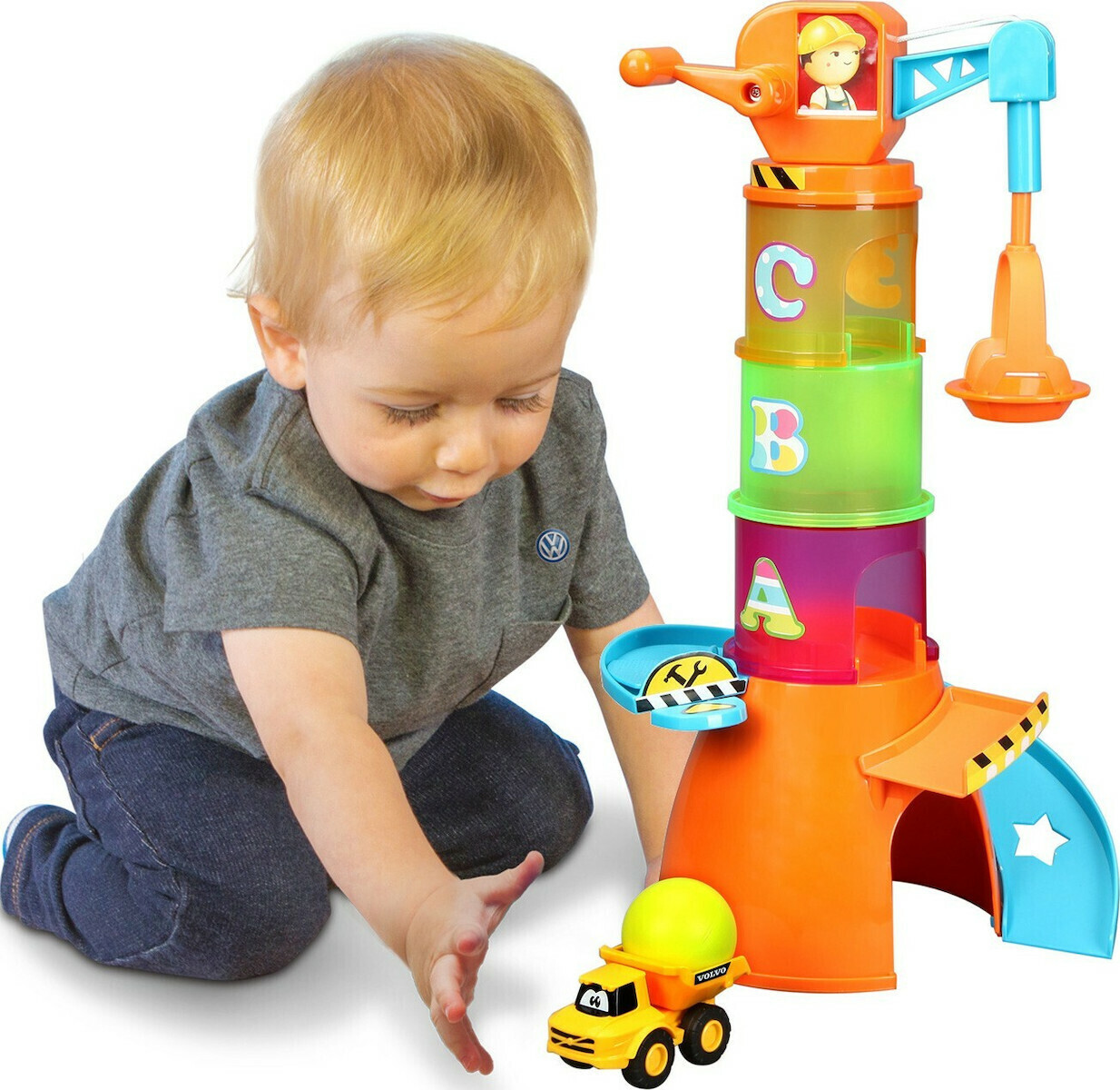 Ο Γερανός VOLVO μαθαίνει στο παιδί να συγκρίνει μεγέθη από το πιο μεγάλο στο πιο μικρό και το επιβραβεύει για τη στοίβαξη του γερανού με τη σωστή σειρά.