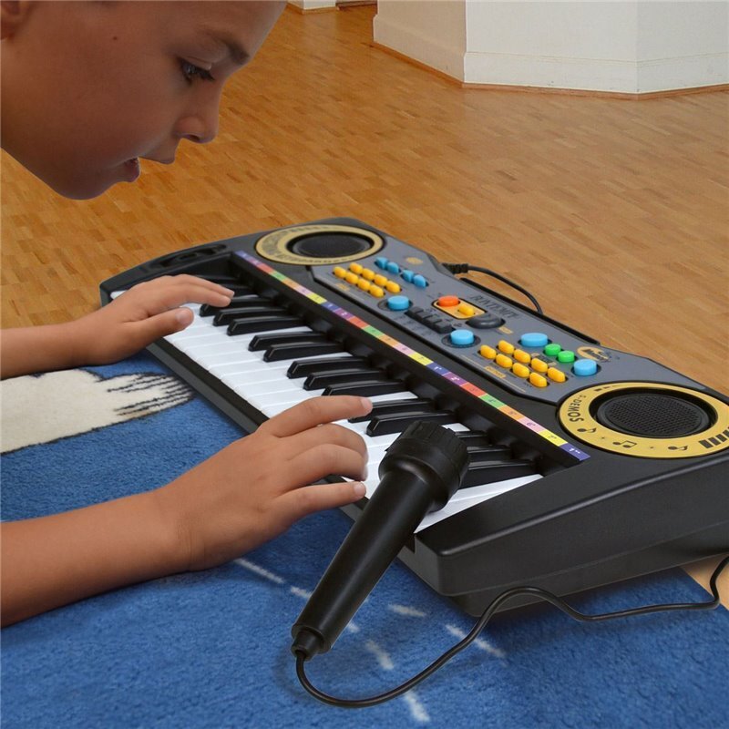 Μουσικό όργανο αρμόνιο μπαταρίας με 37 πλήκτρα και μικρόφωνο. Διαθέτει 5 κομμάτια demo, 8 ήχους και ρυθμούς καθώς και λειτουργία εγγραφής και αναπαραγωγής. Περιέχει οδηγίες και χρήσιμες πληροφορίες. Λειτουργεί με 4 μπαταρίες τύπου ΑΑ (δεν περιέχονται).