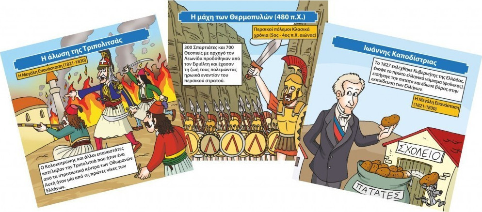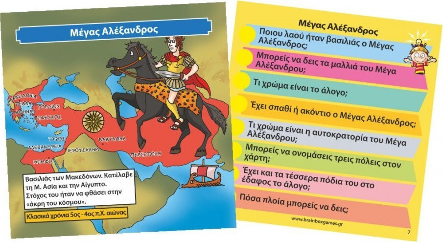 Αυτό το συναρπαστικό BrainBox βελτιώνει την παρατηρητικότητα και τις μνημονικές ικανότητες των παιδιών ενώ παράλληλα ταξιδεύει πίσω στον χρόνο παρουσιάζοντας κάποια από τα πιο σημαντικά ιστορικά γεγονότα της Ελλάδας. Κάθε κάρτα έχει εικόνες με ιστορικές μάχες, μνημεία, σπουδαία πρόσωπα και πολλές ακόμη διασκεδαστικές πληροφορίες!