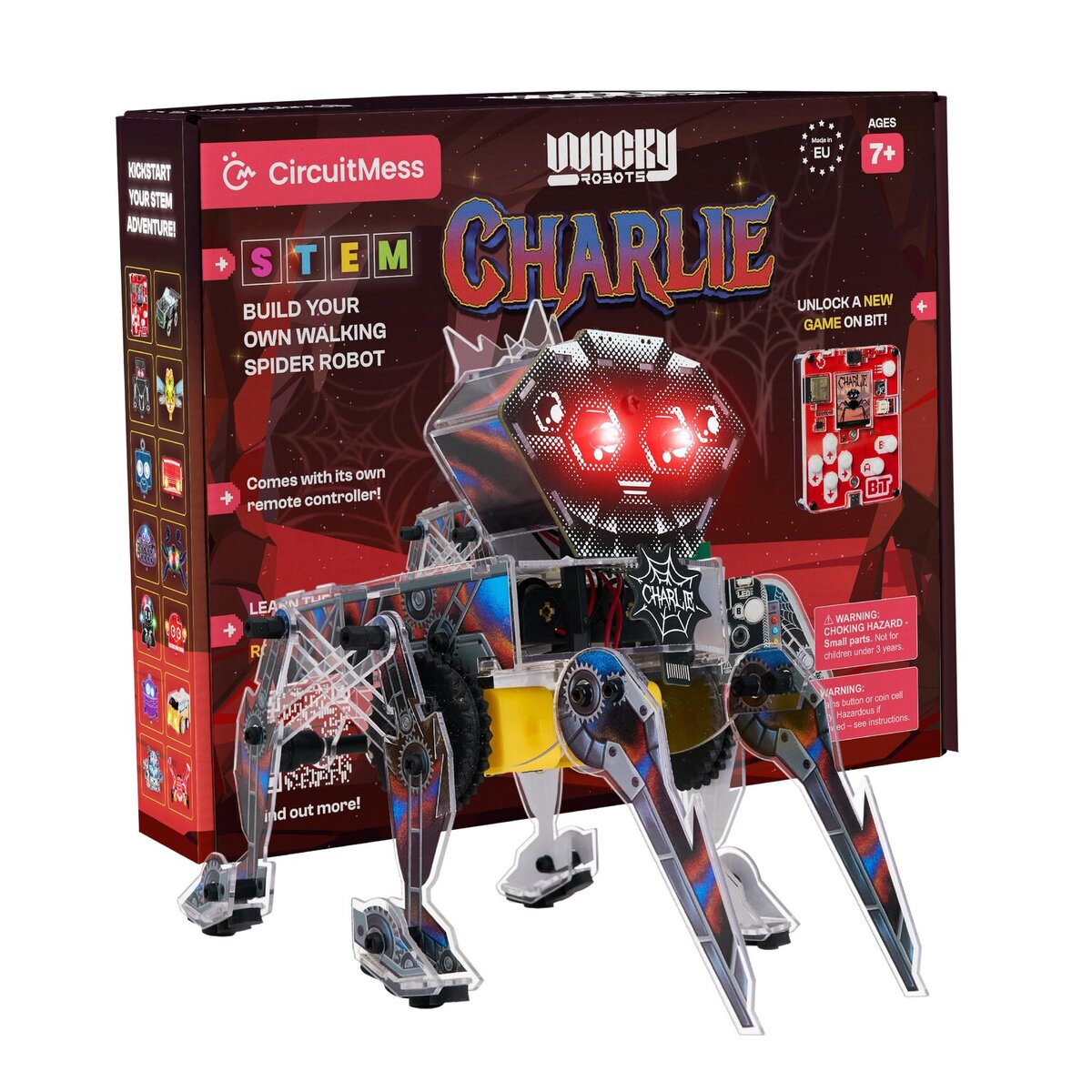 Εξερευνήστε την ηλεκτρονική και ρομποτική με το CircuitMess Charlie - DIY Walking Spider! Δημιουργήστε το δικό σας ρομπότ και ξεκινήστε τη STEM περιπέτεια σας! Ο Charlie είναι ένα ασυνήθιστο ρομπότ που μπορεί να δημιουργήσει ιστούς, μοιάζοντας με αληθινό αράχνη και στις κινήσεις του. Έχει το όνομά του προς τιμήν του πρωτοπόρου επιστήμονα στη ρομποτική και την AI, Charles Rosen.
