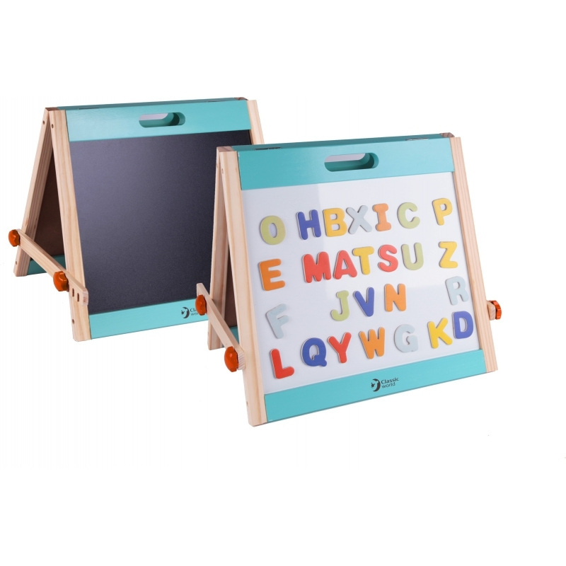 Ο πίνακας δυο χρήσεων διπλώνει και μετακινείται πολύ εύκολα. Περιλαμβάνει 26 γράμματα της αγγλικής αλφαβήτου και είναι ιδανικός για εξάσκηση της γλώσσας.