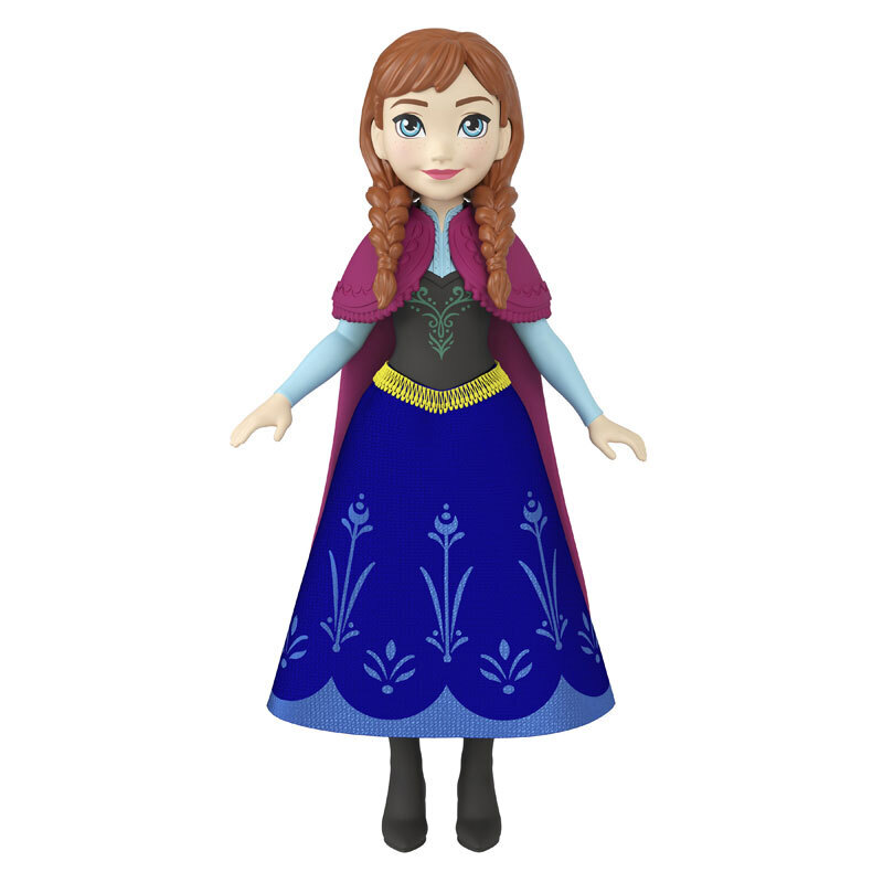 Mattel Disney Frozen II Μίνι Κούκλα Anna 9cm. Γνωρίστε τις κούκλες από τις πιο αγαπημένες ταινίες της Disney "Ψυχρά και Ανάποδα", σε χαριτωμένο μέγεθος και με ευλύγιστα μέλη! Κάθε ευλύγιστη μικρή κούκλα φοράει τα χαρακτηριστικά της ρούχα, που περιλαμβάνουν αποσπώμενη μαλακή φούστα και κάπα.