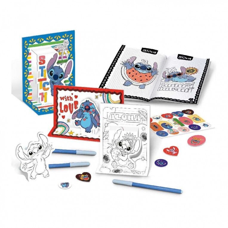 Διασκεδάστε και ζωντανέψτε τον Stitch με τις φανταστικές pop-up σελίδες ζωγραφικής μέσα στο σακίδιο πλάτης! Επιπλέον, μπορείτε να χρωματίσετε το βιβλιαράκι που περιλαμβάνεται και να προσωποποιήσετε τις σχισμές με τα όμορφα αυτοκόλλητα του Stitch.