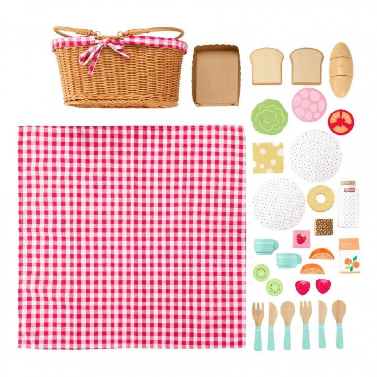 Τα παιδιά προσχολικής ηλικίας μπορούν να μαζέψουν τα πράγματά τους και να ξεκινήσουν για ατελείωτες «υπαίθριες» περιπέτειες με αυτό το ξύλινο καλάθι πικνίκ και αυτό το σετ παιχνιδιού με φαγητό από την Fisher-Price®. Αυτό το σετ 31 τεμαχίων έχει όλα όσα χρειάζονται τα παιδιά για ένα υπέροχα διασκεδαστικό πικ-νικ, όπως πιάτα, ποτήρια, μαχαιροπήρουνα, 17 κομμάτια φαγητού παιχνιδιού, μια άνετη κουβέρτα από ζιγκάμ και ένα καλάθι για να τα μεταφέρετε όλα. Με κομμάτια κατασκευασμένα από ξύλο που προέρχεται από καλά διαχειριζόμενα, πιστοποιημένα δάση FSC®, αυτό το ξύλινο σετ παιχνιδιών προσφέρει φρέσκια διασκέδαση για παιχνίδι ρόλων για το παιδί σας προσχολικής ηλικίας.