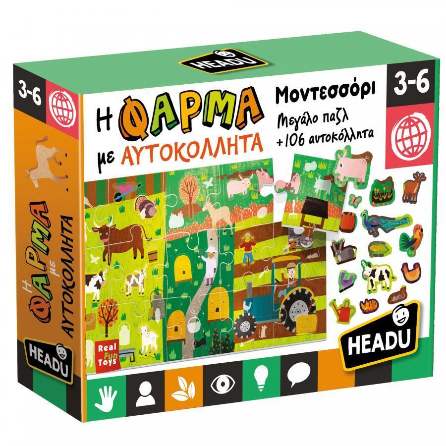 Ένα μεγάλο παζλ με τη φάρμα με περισσότερα από 100 αφαιρούμενα αυτοκόλλητα. Βάλτε τα κομμάτια μαζί, μελετήστε το σχήμα κάθε αντικειμένου, βρείτε το αντίστοιχο αυτοκόλλητο και κολλήστε το στο σωστό μέρος!