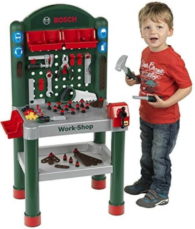 Παιδικός πάγκος εργαλείων Bosch Workshop! Συνέργειο Bosch με 79 εξαρτήματα! Παιχνίδι με λειτουργείες για παιδιά! Περιλαμβάνει εργαλεία όπως πένσα, σφυρί, κατσαβίδια, βίδες, πριόνι κ.α. Ύψος πάγκου: 102 εκατοστά.