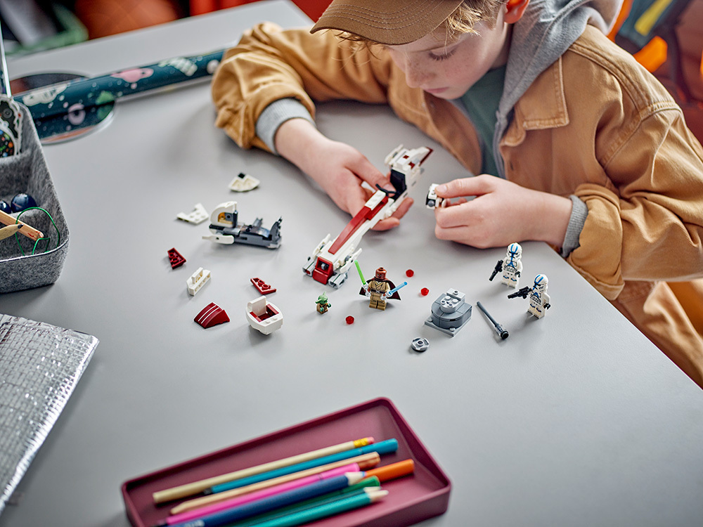 Βοήθησε τον Kelleran Beck και τον Grogu να γλυτώσουν από την εκκαθάριση της Διαταγής 66! Δύο Στρατιώτες Κλώνοι της 501ης έχουν αφήσει την Μηχανή τους BARC αφύλαχτη. Όταν δεν κοιτούν, βάλε τον Grogu με το Ιπτάμενο Καροτσάκι του στο πλευρικό καλάθι, μπες στο κόκπιτ και φύγε μακριά μέσα από τους δρόμους του Coruscant. Απομάκρυνε τους εχθρούς με τους διπλούς εκτοξευτές καρφιών της μηχανής και τα φωτόσπαθα του Kelleran Beck καθώς ταξιδεύεις προς την ασφάλεια!