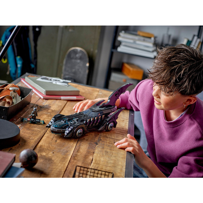 Το Batmobile διαθέτει κομψό, μορφοποιημένο παρμπρίζ και κινούμενους τροχούς, εξασφαλίζοντας ότι είναι έτοιμο για δράση σε κάθε στιγμή. Ανοίγοντας την καμπίνα, αποκαλύπτεται λεπτομερής εσωτερικός χώρος που απο captures την ουσία της υψηλής τεχνολογίας εμπειρίας του Batman. Το σετ περιλαμβάνει επίσης μια μινι φιγούρα του Batman, συνοδευόμενη από ειδική βάση, που το καθιστά ιδανικό για κάθε συλλογή.