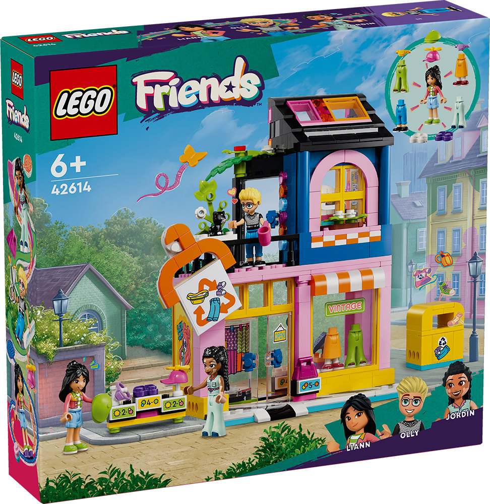 Ο Όλλι λατρεύει να δημιουργεί νέες εμφανίσεις από παλιά ρούχα. Είναι ο δικός του τρόπος να απολαμβάνει τη δημιουργικότητα ενώ βοηθά τον πλανήτη. Σήμερα, δουλεύει στο Βίντατζ Κατάστημα Μόδας, όπου πάντα υπάρχει κάτι διασκεδαστικό να ανακαλύψει. Η Λιάν εξερευνά το κατάστημα και πηγαίνει προς το δοκιμαστήριο για να δοκιμάσει κάποια ρούχα. Στο μεταξύ, ο Όλλι ανεβαίνει στο εργαστήριο, όπου οι δωρεές μπαίνουν στο πλυντήριο και μετά επαναχρησιμοποιούνται. Καλή δουλειά, Όλλι!Εμπνεύστε τους μικρούς κατασκευαστές να σκεφτούν τον πλανήτη ενώ διασκεδάζουν με τη μόδα με αυτό το παιχνίδι κοινωνικο-συναισθηματικής ανάπτυξης. Το LEGO® Friends Βίντατζ Κατάστημα Μόδας (42614) παιχνίδι για παιδιά, κορίτσια και αγόρια ηλικίας 6+ περιλαμβάνει 3 LEGO Friends χαρακτήρες, φιγούρα γάτας και αξεσουάρ.