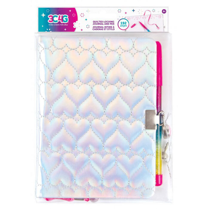 Κρατήστε τις σκέψεις σας κλειδωμένες με το Make It Real Quilted Locking Journal & Pen! Αυτό το χαριτωμένο σημειωματάριο όχι μόνο παρέχει ένα ασφαλές μέρος για να γράψετε, αλλά είναι επίσης ένα κομψό αξεσουάρ. Πείτε αντίο στα βαρετά ημερολόγια και κάντε τις σκέψεις σας πραγματικά δικές σας. Η συσκευασία περιλαμβάνει: 1 ημερολόγιο 192 σελίδες με κλειδαριά. 1 στυλό με glitter.