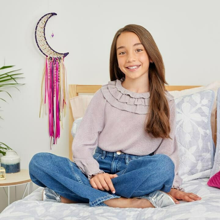 Φωτίστε κάθε παιδικό δωμάτιο με την ονειροπαγίδα φεγγάρι με φώτα. Τα παιδιά θα απολαύσουν το σχεδιασμό, τη δημιουργία και την προβολή της δικής τους ονειροπαγίδας. Το κιτ περιέχει τα υλικά που απαιτούνται για τη δημιουργία εξατομικευμένης διακόσμησης δωματίου, με φωτάκια νεράιδας για εκθαμβωτικό αποτέλεσμα. Τα λευκά φώτα απαιτούν 2 μπαταρίες κουμπιά (δεν περιλαμβάνονται).