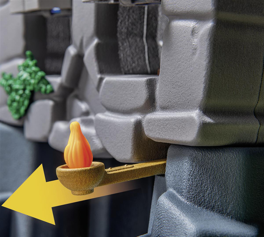• Πιέζοντας τη φλογοθήκη στην είσοδο της σπηλιάς ανοίγουν τα δόντια και τα μάτια του βράχου κρανίου, αποκαλύπτοντας τα δύο κανόνια.