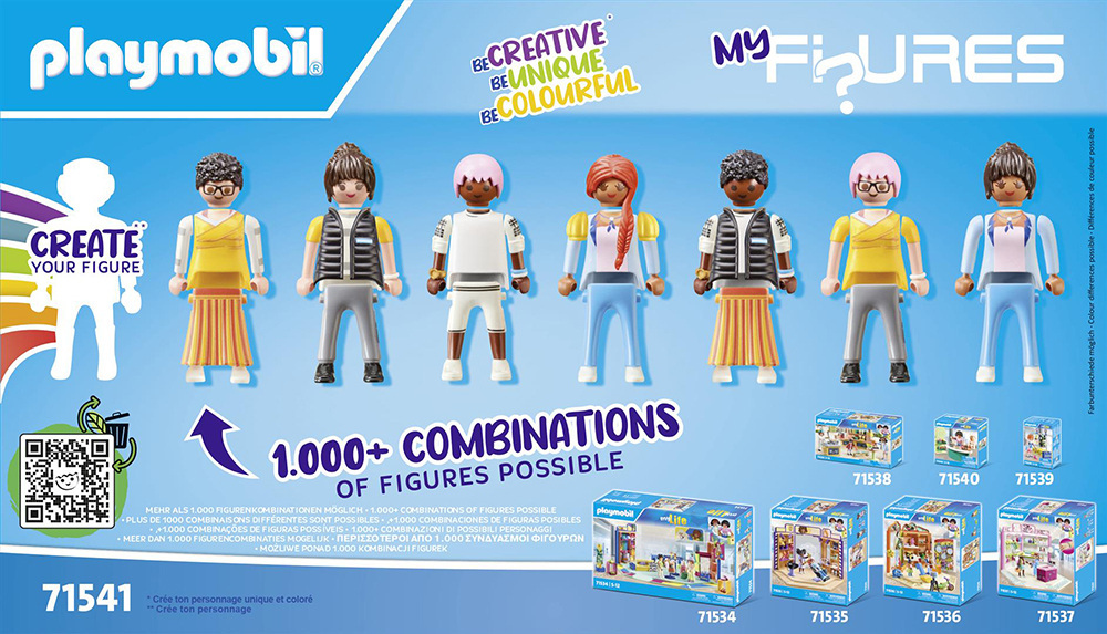 Be Creative. Be Unique. Be Colourful. Η διάσημη φιγούρα PLAYMOBIL γίνεται trend και απελευθερώνει τη φαντασία σας για να δημιουργήσετε περισσότερους από 1.000 διαφορετικούς συνδυασμούς με αποσυναρμολογημένες φιγούρες PLAYMOBIL. Φτιάξτε τις κατά-δικές σας, ξεχωριστές φιγούρες με το νέο σετ παιχνιδιού My Figures: Ώρα για ψώνια.