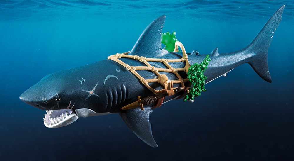 Βυθιστείτε σε συναρπαστικές θαλάσσιες περιπέτειες με το PLAYMOBIL Πειρατής με γιγαντιαίο Καρχαρία! Αυτό το τρομακτικό δίδυμο είναι έτοιμο να τρομοκρατήσει τα νερά. Το σαγόνι του γιγαντιαίου καρχαρία μπορεί να παγιδεύσει το ανυποψίαστο θήραμα, ενώ ο τολμηρός πειρατής κρέμεται από το δίχτυ, οπλισμένος με μαχαίρια και έτοιμος για μάχη. Με όπλα που προσαρμόζονται στο δίχτυ και έναν κολυμβητικό καρχαρία, η δράση δεν σταματά ποτέ. Ιδανικό για φανταστικό παιχνίδι, αυτό το σετ PLAYMOBIL συνδυάζει τρομακτικά θαλάσσια πλάσματα και τολμηρούς πειρατές για ατελείωτες θαλάσσιες περιπέτειες. Αφήστε τη φαντασία του παιδιού σας να ταξιδέψει στους ανοιχτούς ωκεανούς!