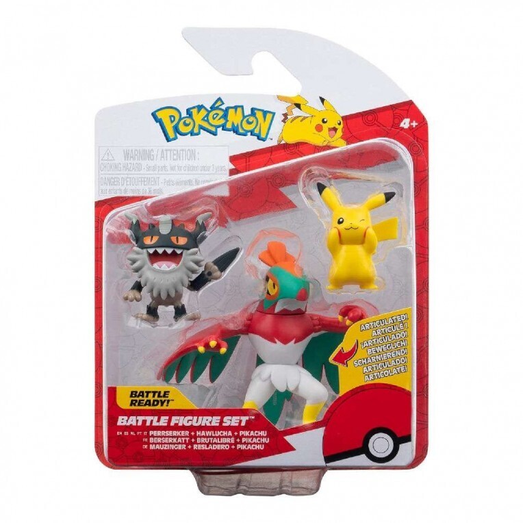 Pokemon Σετ με 3 Φιγούρες Μάχης Pikachu, Perrserker & Hawlucha - PKW3601