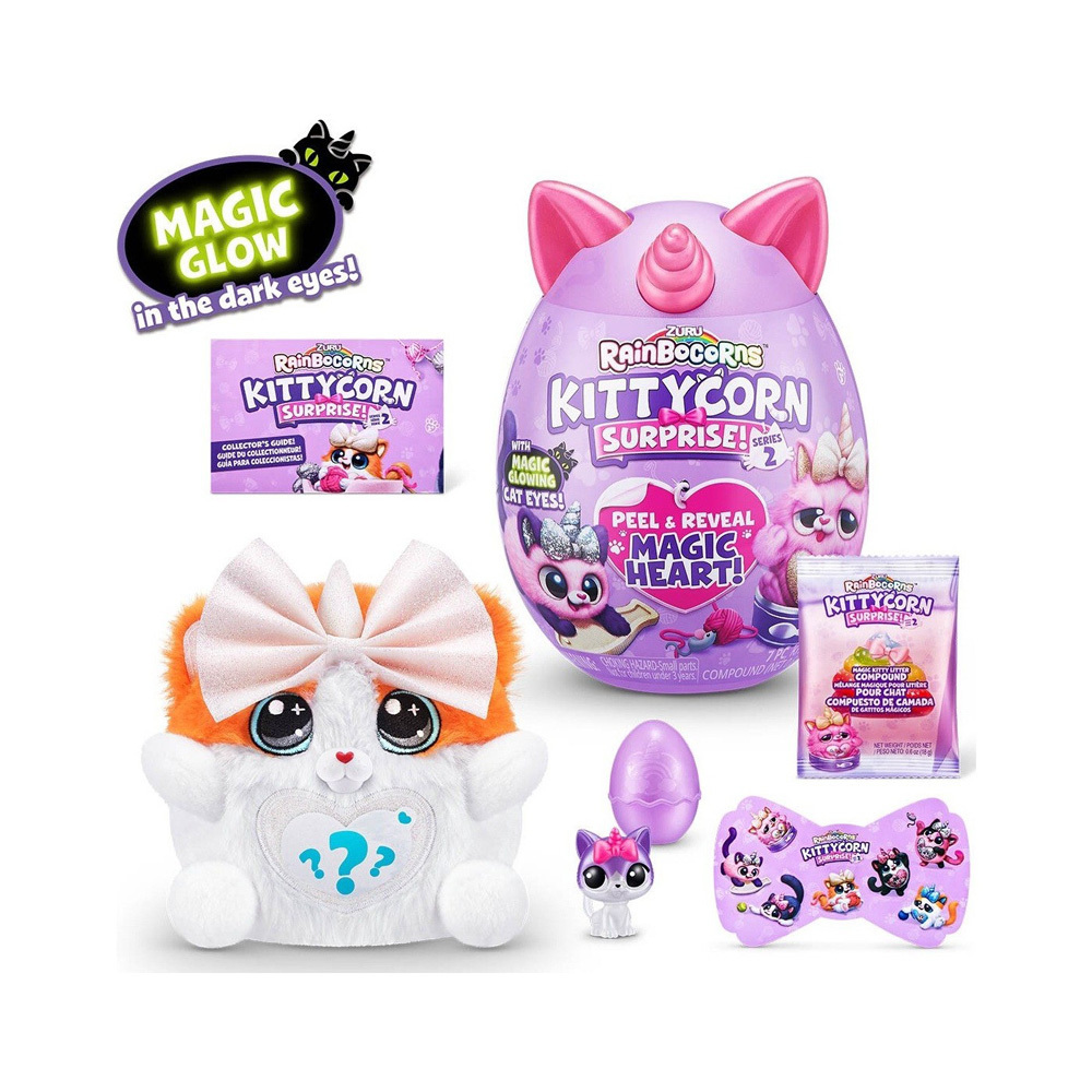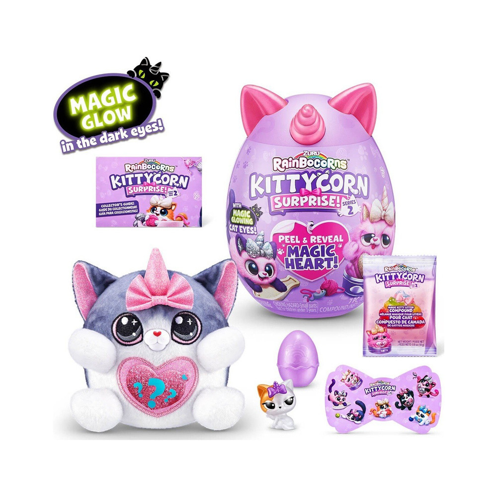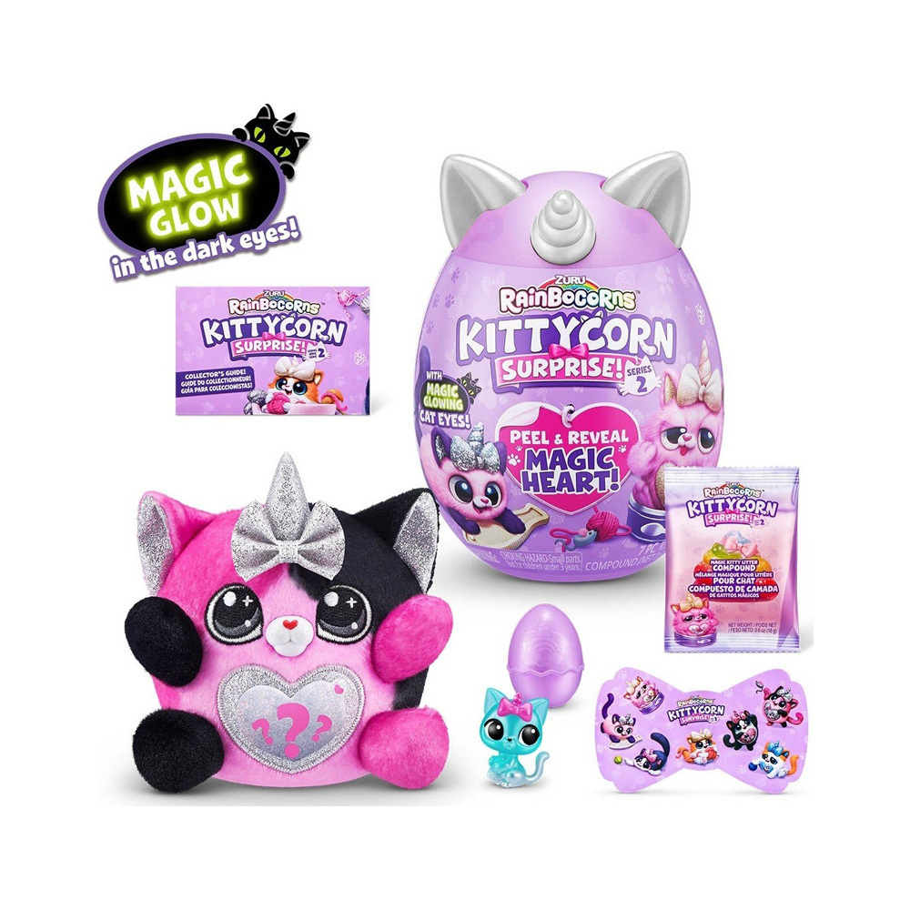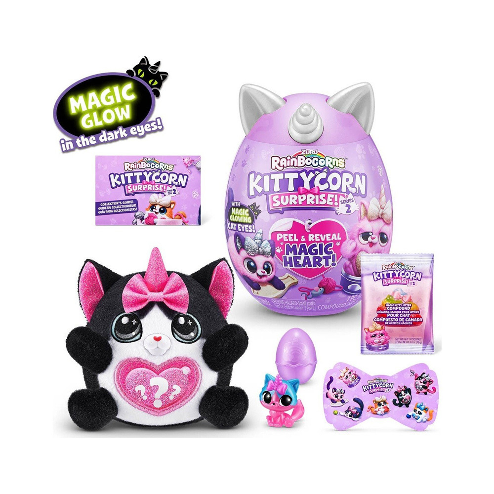 Το Rainbocorns Kittycorn Surprise series 2 προορίζεται να γίνει ο νέος σας φίλος! Αυτά τα γατάκια έρχονται με μάτια που λάμπουν στο σκοτάδι και μια μαγική καρδιά για να αποκαλύψεις τι αγαπά το γατάκι σου! Υπάρχουν 10 εκπλήξεις μέσα, συμπεριλαμβανομένης του slime της γατούλας και αυτοκόλλητα! Σύλλεξε και τα 7 γατάκια! Περιέχει: