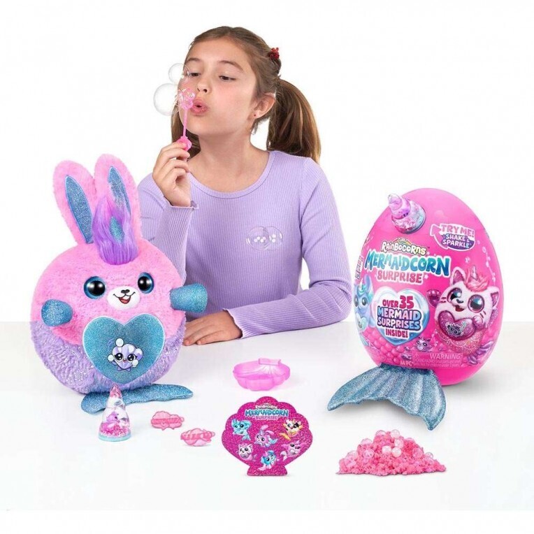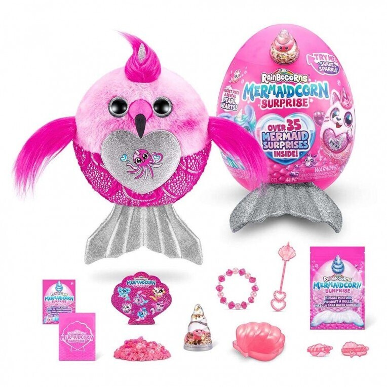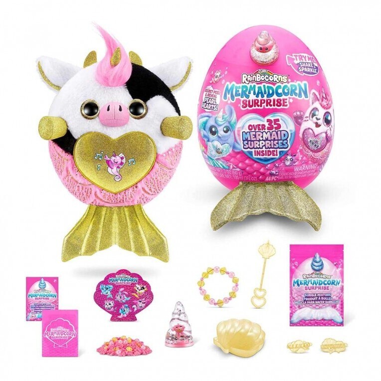 Αυτά τα Rainbocorns Mermaidcorns είναι έτοιμα να κάνουν θραύση στο Rainboville! Ανοίξτε το αυγό σας για να ανακαλύψετε τον νέο σας φίλο με τα πτερύγια γοργόνας και πάνω από 35 εκπλήξεις! Αυτά τα χαριτωμένα λούτρινα έρχονται με μια γυαλιστερή ουρά γοργόνας και ένα boo-boocorn κρυμμένο μέσα στο κέρατό τους ! Υπάρχουν 6 Mermaidcorns για να συλλέξεις, κάθε ένα με μια καρδιά που ξεκολλάει και αποκαλύπτεται για να σου πει τι αγαπάει το Mermaidcorn σου! Εξερευνήστε τον Κόλπο των Γοργόνων και βρείτε το νέο σας χαριτωμένο φιλαράκι! Αποκτήστε σήμερα το λούτρινο βελούδινο παιχνίδι έκπληξη Zuru Rainbocorns Mermaidcorns.
