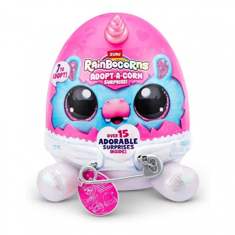 Υιοθετήστε έναν ολοκαίνουργιο κολλητό με το αυγό έκπληξη Rainbocorns Adopt-A-Corns! Υπάρχουν 7 Adopt-A-Corns για να υιοθετήσετε (το καθένα πωλείται ξεχωριστά), με κάθε αυγό να περιέχει πάνω από 15 αξιολάτρευτες εκπλήξεις στο εσωτερικό του!