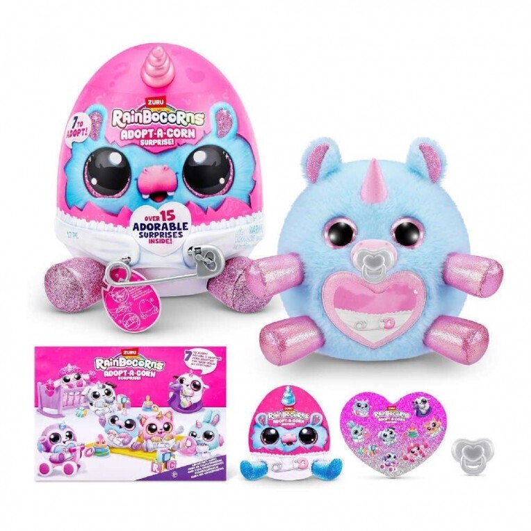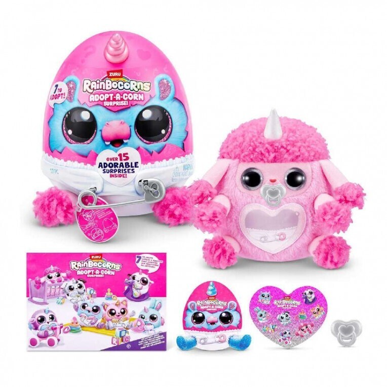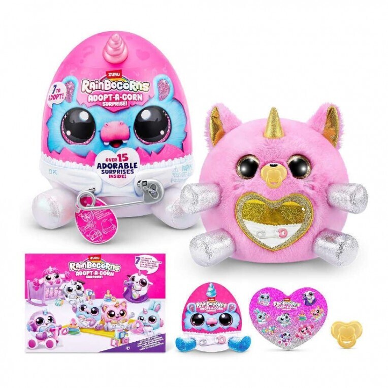 Τα πιο χαριτωμένα μωρά Rainbocorns τριγυρίζουν στο Rainboville και χρειάζονται την αγάπη και τη φροντίδα σας! Βγάλτε το Adopt-A-Corn σας από την πάνα του για περιπετειώδη διασκέδαση και βάλτε το πίσω μόλις έρθει η ώρα για λίγη ξεκούραση. Μην ξεχάσετε την πιπίλα! Κάντε το επίσημο υπογράφοντας το πιστοποιητικό υιοθεσίας.