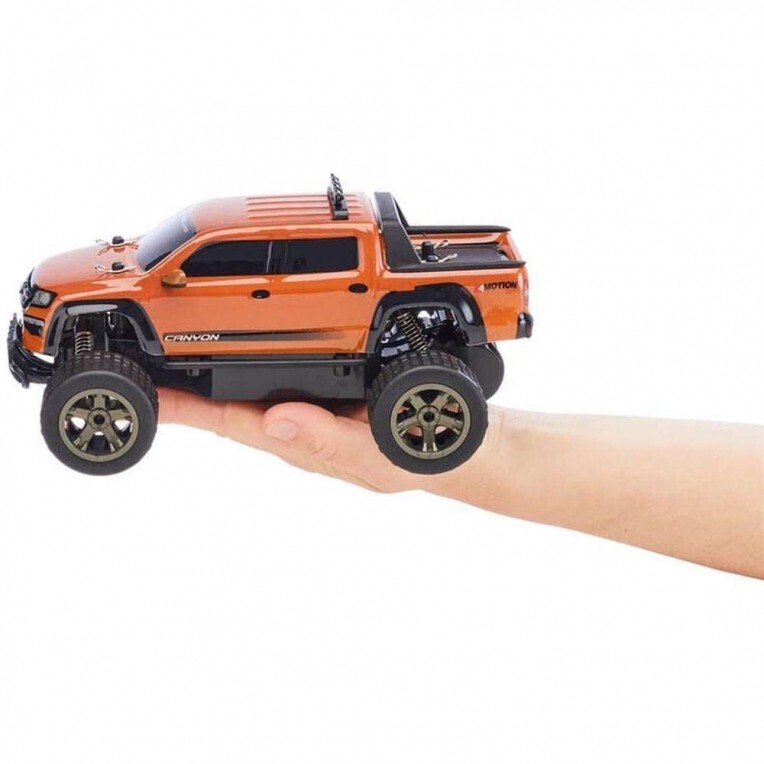 Με μήκος 210 mm, πλάτος 140 mm και ύψος 95 mm, το RC Truggy VW Amarok έχει το τέλειο μέγεθος για να λάμπει τόσο στην άσφαλτο όσο και εκτός δρόμου. Τα μεγάλα ελαστικά από καουτσούκ παρέχουν βέλτιστη πρόσφυση και επιτρέπουν ελιγμούς ακριβείας, ενώ το ισχυρό σύστημα μετάδοσης κίνησης διασφαλίζει ότι είστε πάντα στην πρώτη γραμμή.