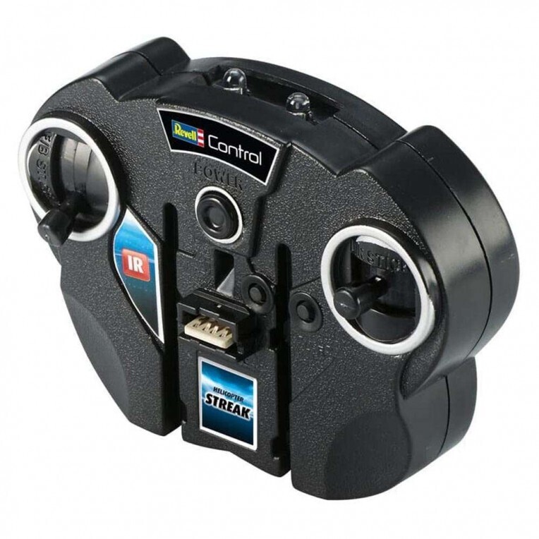 Μικρό εσωτερικό ελικόπτερο με cool λάμψη! Λόγω του εφέ χρωματισμού του και των ενσωματωμένων LED, το Streak λάμπει στο σκοτάδι. Χάρη στον έλεγχο IR 2 καναλιών, ο πιλότος χρειάζεται να επικεντρωθεί μόνο στον έλεγχο του ύψους και στην κατεύθυνση αριστερά/δεξιά καθώς το ελικόπτερο πετάει αυτόματα προς τα εμπρός. Το ηλεκτρονικό γυροσκόπιο και το ομοαξονικό σύστημα ρότορα σταθεροποιούν το μοντέλο στον αέρα. Το ελικόπτερο μπορεί να φορτιστεί άνετα και ασύρματα στο τηλεχειριστήριο.