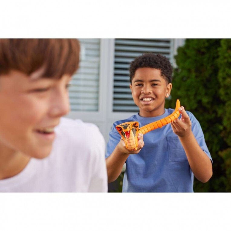 Απελευθερώστε τη συγκίνηση με την Robo Alive King Cobra, με τρομακτικές διαστάσεις 44,5 cm από τη γλώσσα μέχρι την ουρά. Διαθέτοντας τεχνολογία έξυπνης κίνησης, κουνάει τη γλώσσα του και γλιστράει ρεαλιστικά. Ιδανικό για επικές φάρσες, κρύψτε το για να ξεσπάσει σε ουρλιαχτά που προκαλούν ανατριχίλα! Με εξαιρετικά ρεαλιστικό δέρμα φιδιού, αυτή η King Cobra μοιάζει τόσο τρομακτική όσο και η πραγματική. Τολμήστε να το πάρετε και συλλέξτε ολόκληρη τη συλλογή ερπετών για μια αξέχαστη περιπέτεια!