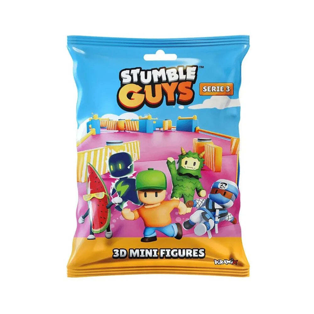 Stumble Guys 3D Mini Figures Series 3 σε σακουλάκι! Η συλλογή δράσης Stumble Guys συνεχίζεται με την σειρά 3 η οποία περιλαμβάνει νέους φανταστικούς χαρακτήρες από το γνωστό διαδικτυακό παιχνίδι. Η συλλογή Stumble Guys της σειράς 3 περιλαμβάνει 26 διαφορετικές φιγούρες δράσης. Το κάθε φακελάκι περιλαμβάνει μία (1) φιγούρα δράσης 5 cm. Μπορείς να τις συλλέξεις όλες και να βρεις τις πιο σπάνιες φιγούρες. Υπάρχουν 5 special συλλεκτικές φιγούρες: 2 με μεταλλική λάμψη, 1 αστράφτει σας κρύσταλλο, 1 φωτίζει στο σκοτάδι και 1 με glitter. Η σειρά 3 της συλλογής Stumble Guys περιλαμβάνει τους εξής χαρακτήρες: Mr. Stumble, Mr Business, Fireman Torch, Viking Bjorn, Willy Penguin, Astronaut, Princess, Shiro, Tanner, Judge Rindhold, Stumble Invaders , Oni, Phoenix, Dark Firefist, Pirate Seadog, Swamp Troll, Woofer, Clown Bozo, Nian Beast, Unpeeled, Hot Gloves MC Love, Capt Diamondheart, Bolt, Sereia, Orbit, Bonez McBling. Συνέχισε την υπέροχη συλλογή Stumble Guys, παίξε με τις φιγούρες δράσης, αντάλλαξε φιγούρες με τους φίλους σου, διακόσμησε το δωμάτιο σου αλλά κυρίως διασκέδασε! Κατάλληλο για παιδιά +3 ετών
