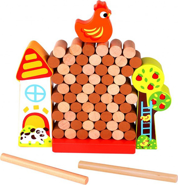 Το παιχνίδι TOOKY TOY Wooden Farm Jenga είναι jenga για τους νεότερους. Είναι διασκεδαστικό και αποτελεί μάθημα πολύτιμων δεξιοτήτων. Η αισθητική κατασκευή και τα χρώματα προσελκύουν την προσοχή των παιδιών. Χτίστε έναν τοίχο και τοποθετήστε το κοτόπουλο στην κορυφή, αφαιρώντας ένα μπαστούνι κάθε φορά. Όποιος αναγκάσει τον τοίχο να γκρεμιστεί χάνει!