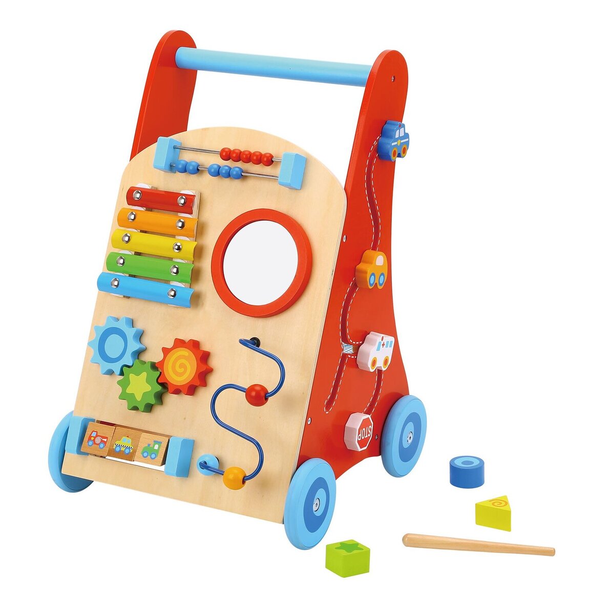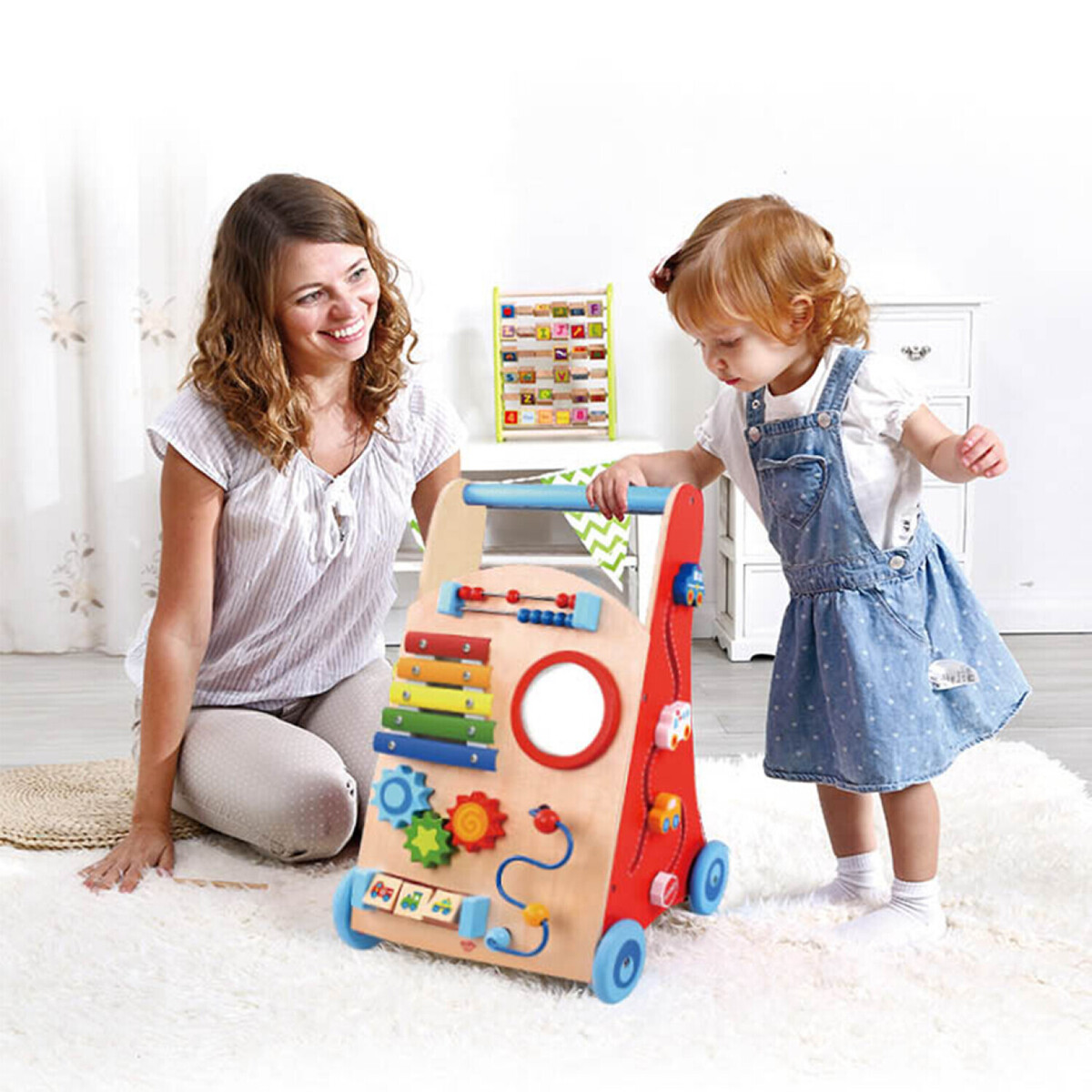 Αυτή η ξύλινη περπατούρα αποτελεί παιχνίδι-στήριγμα για τα πρώτα βήματα του παιδιού και για την μετέπειτα ανάπτυξη και βελτίωση των κινητικών του δεξιοτήτων.