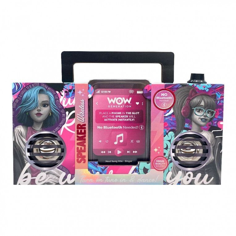 Είστε έτοιμοι να ανεβάσετε τη μουσική σας στο επόμενο επίπεδο; Σας παρουσιάζουμε το νέο Φορητό Ασύρματο Ηχείο Ενισχυτή WOW Generation! Σχεδιασμένο για τα κορίτσια WOW που θέλουν να απολαμβάνουν την αγαπημένη τους μουσική με στυλ και χωρίς φασαρία.